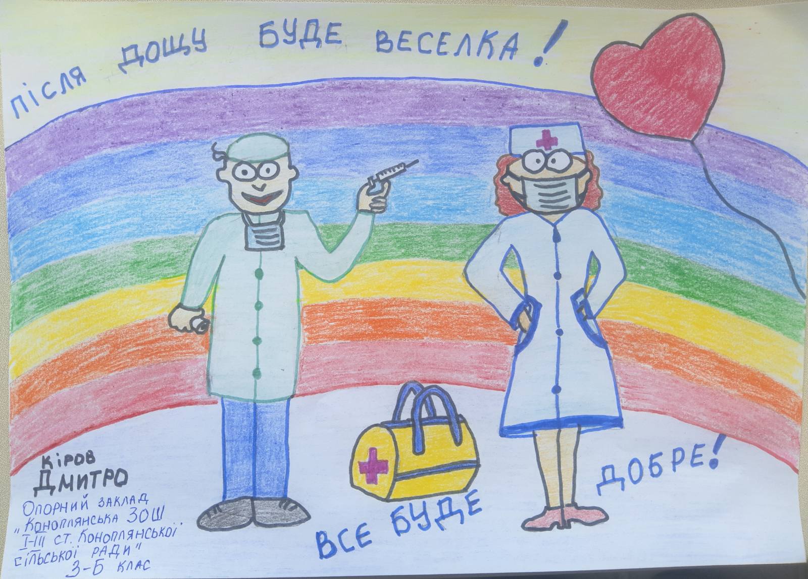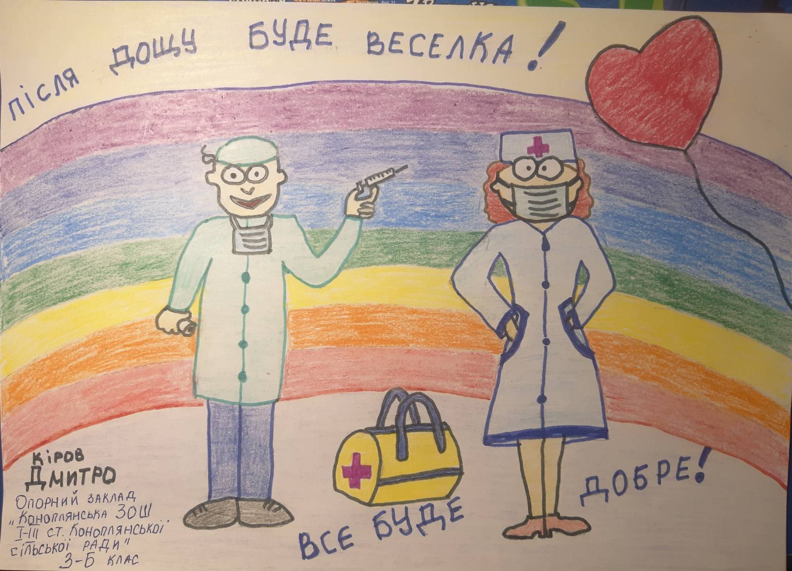 Мы все стараемся им помочь, чем можем. Взрослые снабжают больницы необходимым оборудованием и средствами защиты, а дети — подбадривают медиков своими рисунками. При поддержке департамента образования области, мы собрали десятки прекрасных искренних картинок, которыми школьники Одессы и области благодарят наших героев в масках за их работу. Рисовали дети дома, и нам передали фотографии. Мы их обязательно вышлем всем нашим медикам!